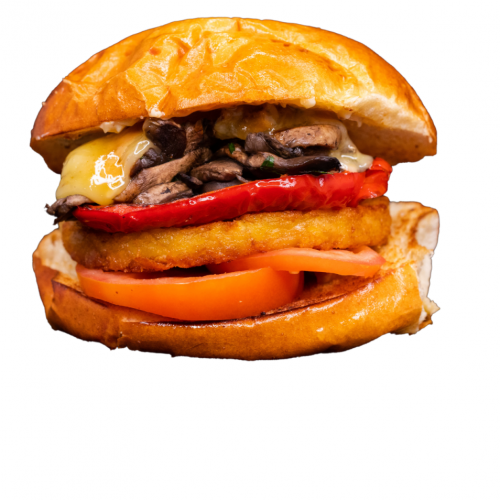 Tian de légumes (poivrons rouges, oignons, champignons, tomate), galette de pomme de terre, tomme de Savoie, sauce tata Maïté