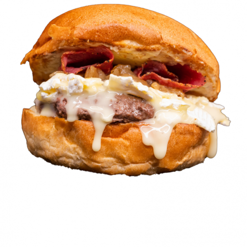 Bœuf charolais, camembert au lait cru, pastrami, oignons confits, sauce tata Maïté.